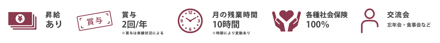 待遇 各社会保険完備/昇給・賞与あり(※会社業績による)/交通費規定支給/資格手当あり